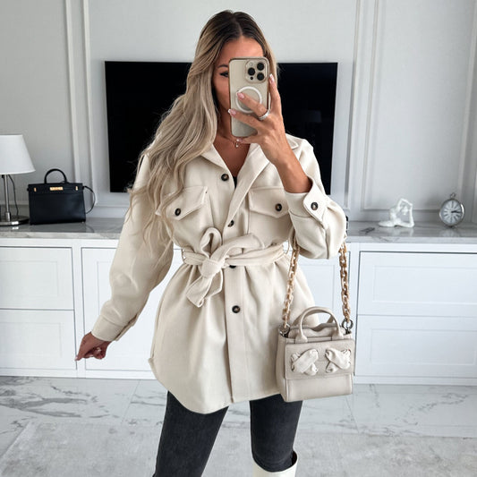 Fashionable Woolen Belted Jacket