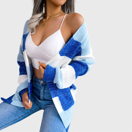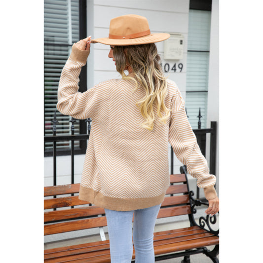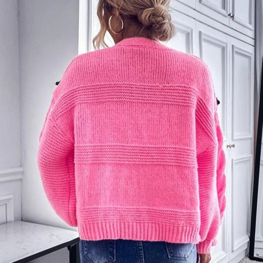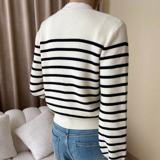 Elegant Lantern Sleeve Striped Sweater Cardigan