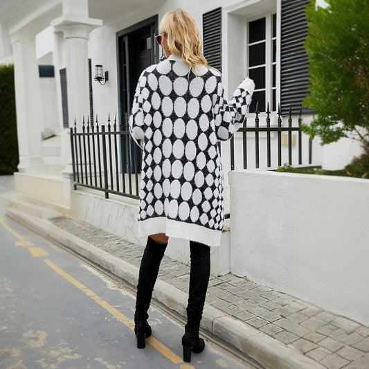 Winter Diamond Plaid Tassel Knitted Cardigan Sweater