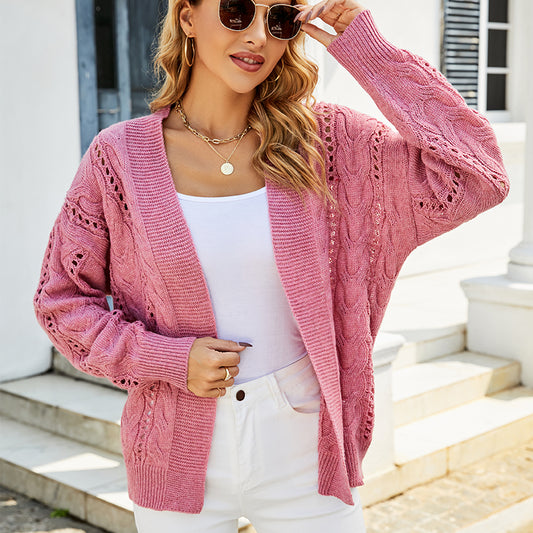 Cozy Winter Hollow Cutout Knitted Cardigan Sweater