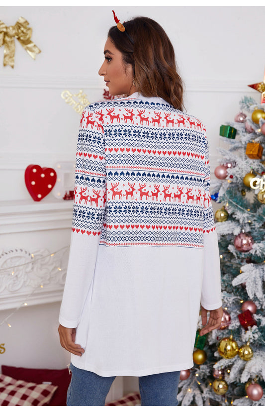 Stylish Christmas Pattern Printed Loose Cardigan Coat