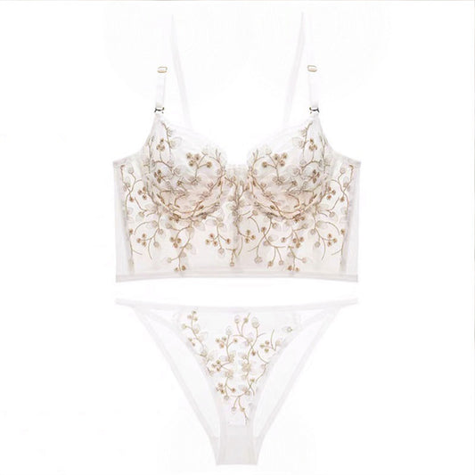 Thin Embroidery Underwired Strap Lace Bra Panty Set