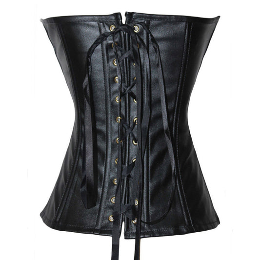 Tight Zipper Faux Leather Court Corset Shapewear