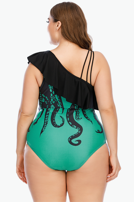 Stunning Green Octopus Plus Size One Piece Swimsuit