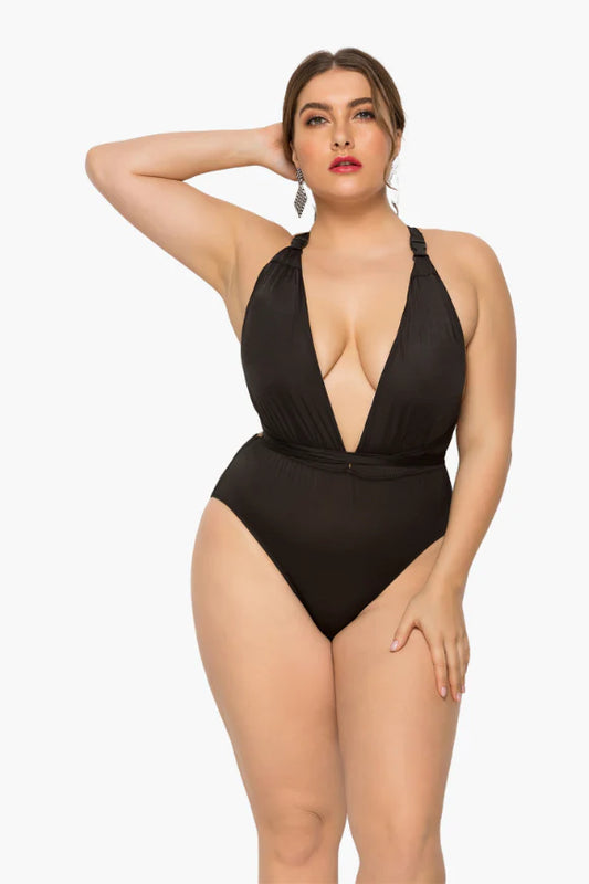 Black Zipped Sport One Piece Plus Size Swimsuit