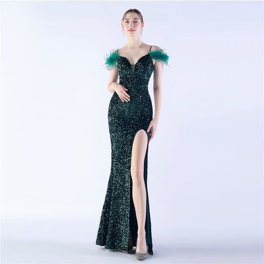 Christmas Puff Sleeve Sequined Cocktail Dress