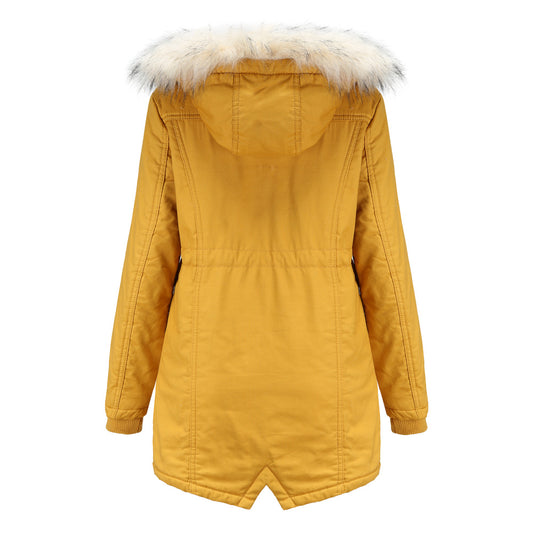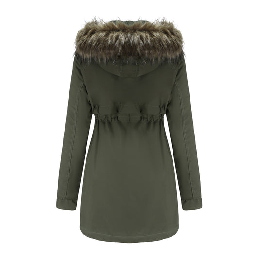 Winter Fleece Fur Collar Mid Length Overcoat Parkas