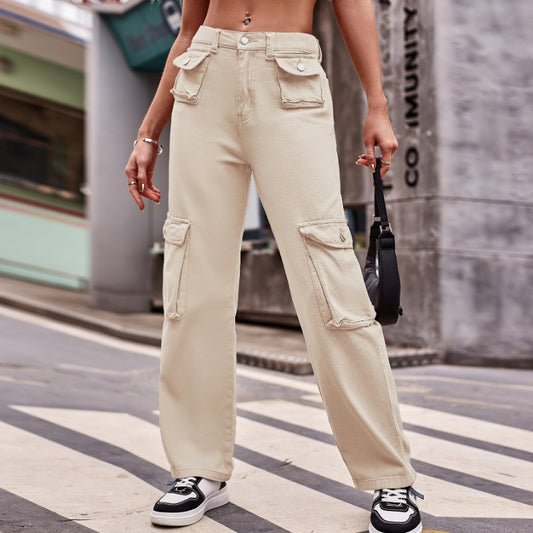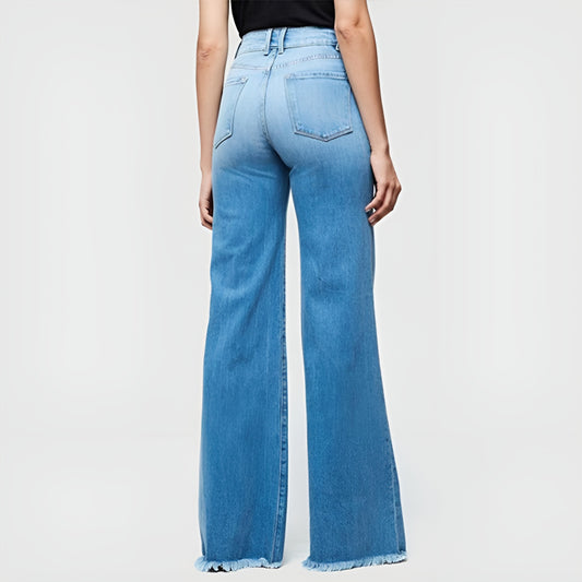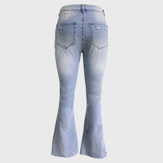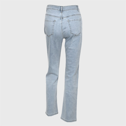 Stylish Loose Side Split Rhinestone Chain Jeans