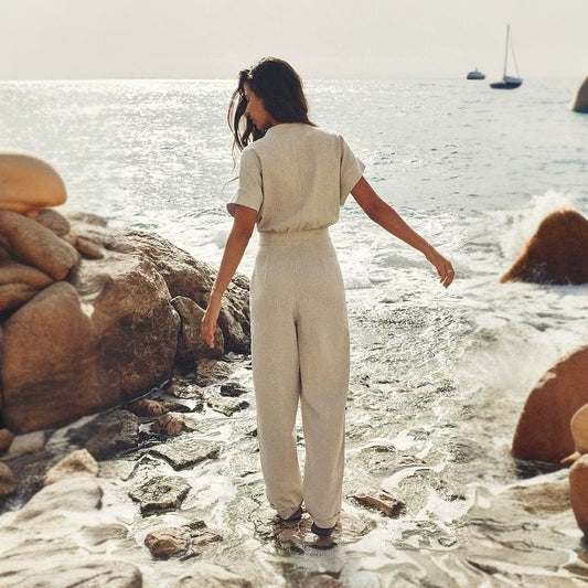 Summer Linen Blended Straight Long Jumpsuit