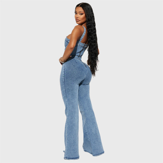 Slim Fit Backless Retro Denim Jumpsuit