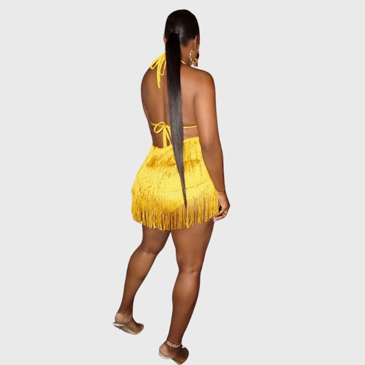 Hochelastischer Denim-Strampler mit zerrissenen Quasten