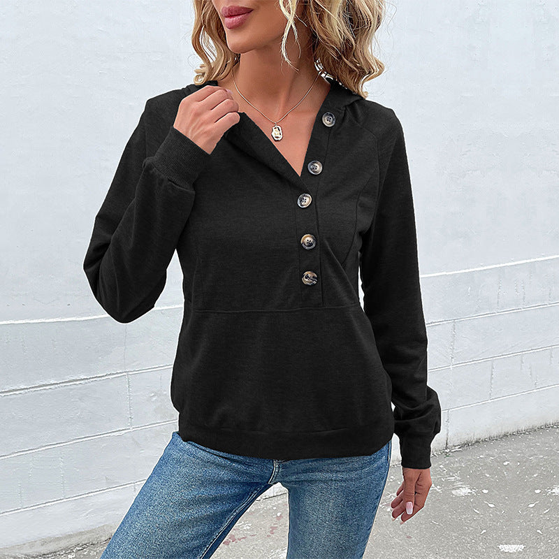 Casual Comfort Button Long Sleeve Hoodie