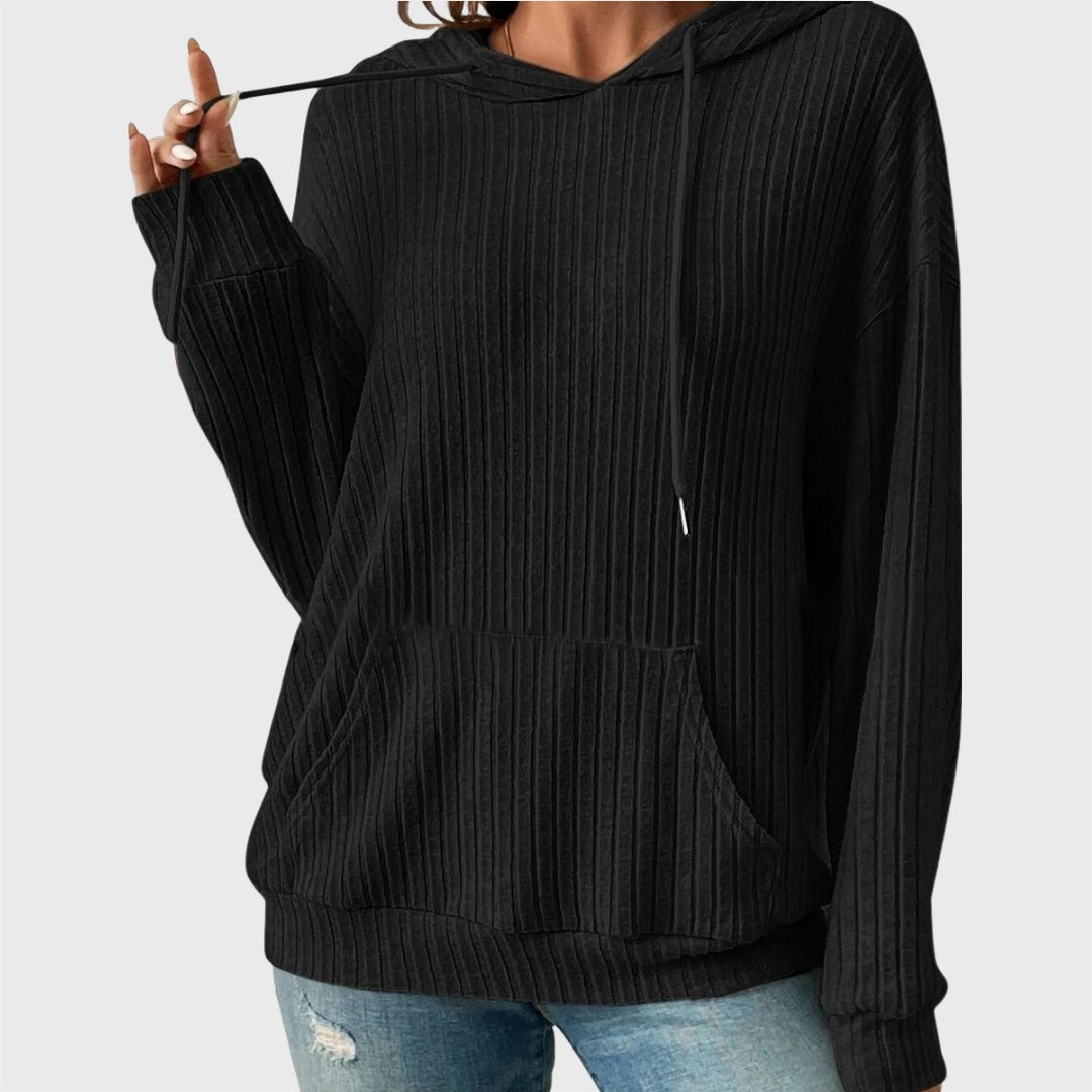 Casual Sunken Stripe Knit Sweater Hoodie
