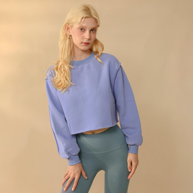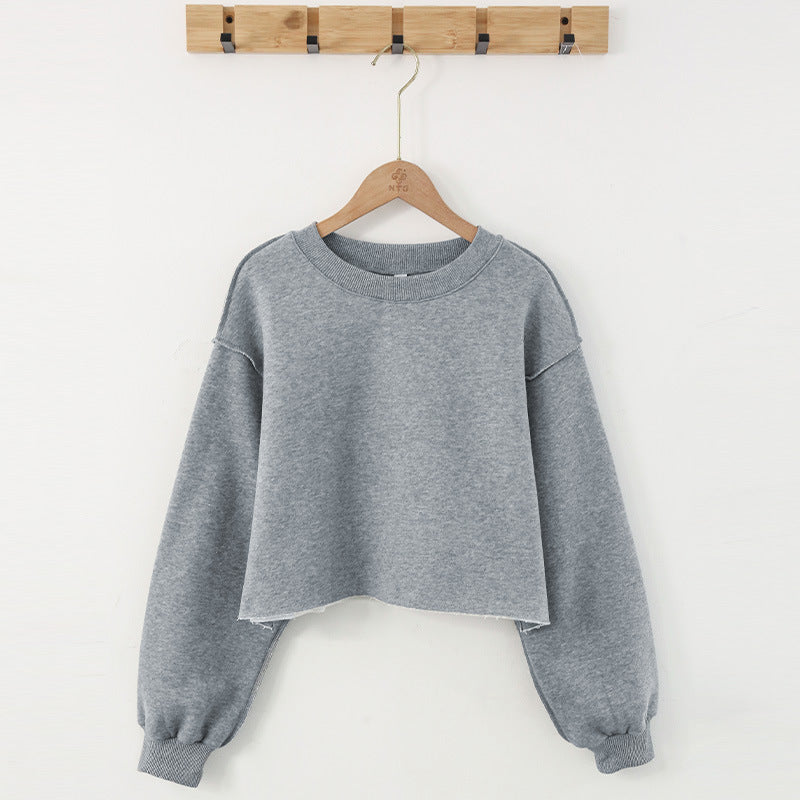 Fleece Lined Long Sleeve Short Cropped Sweatshirt