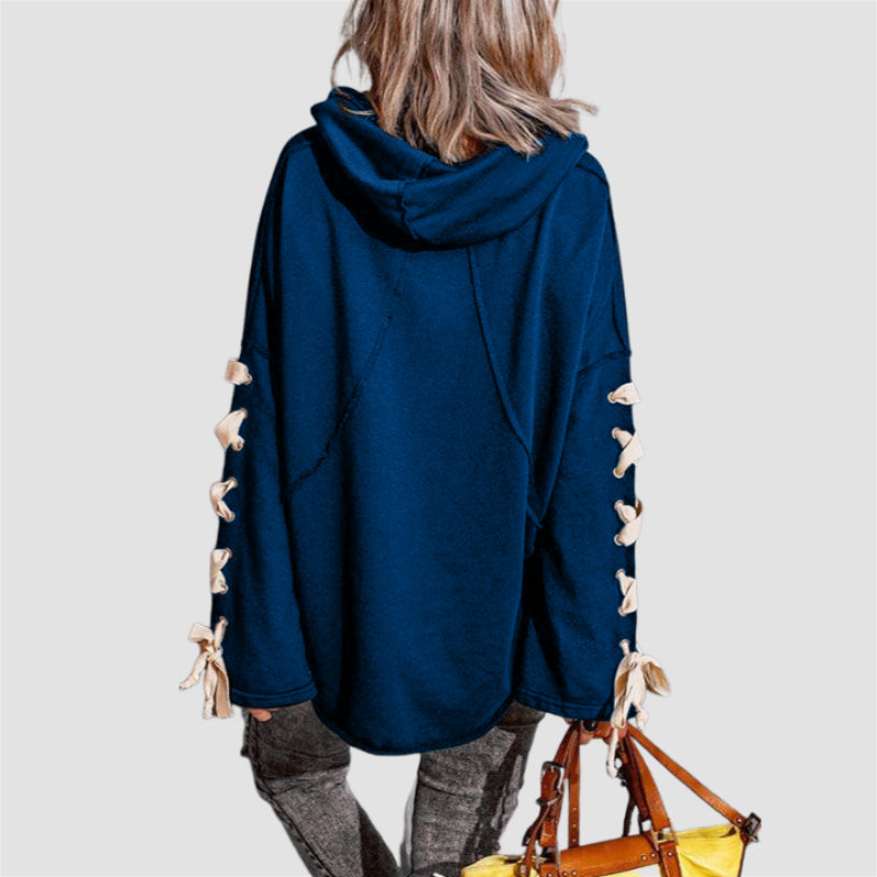 Pile Collar Stylish Lace Up Sweater Hoodie